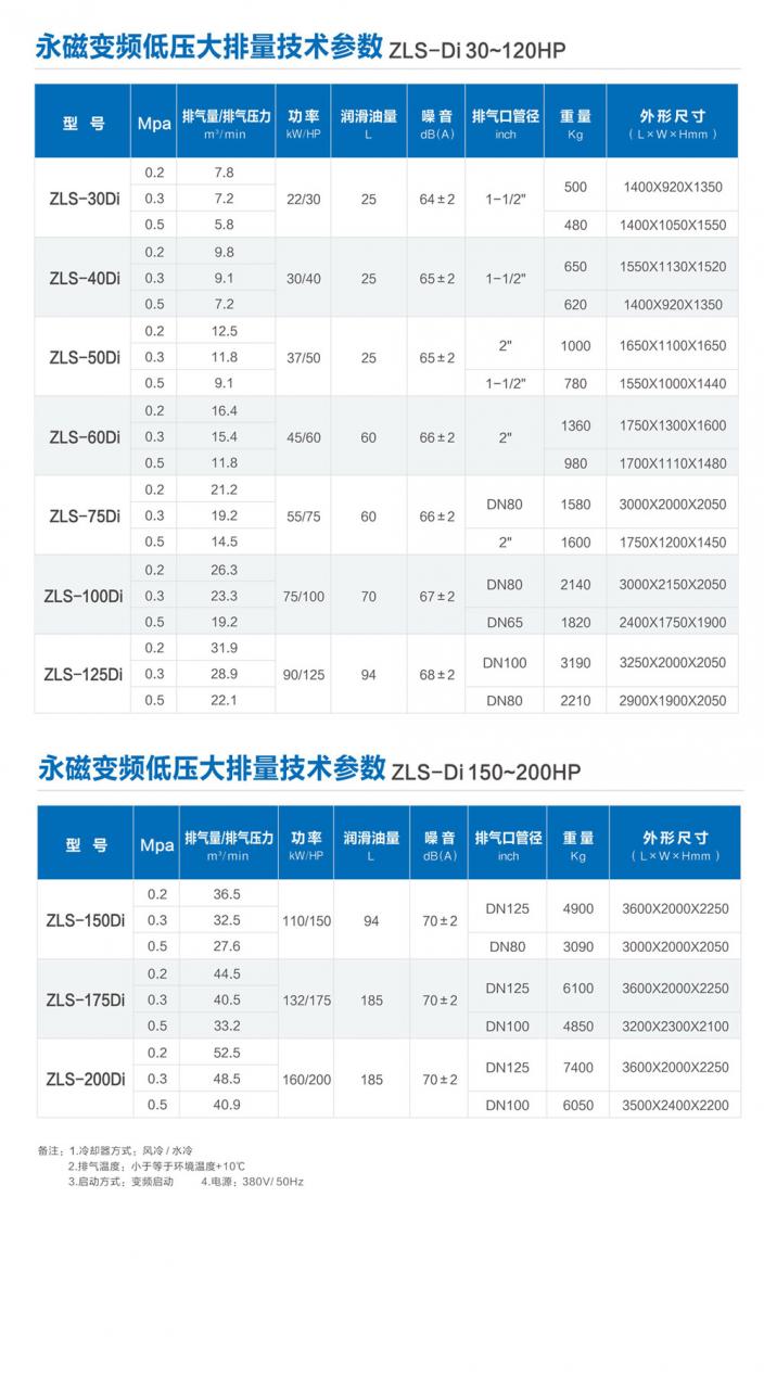 ZLS-Di 永磁變頻低壓大排量空壓機